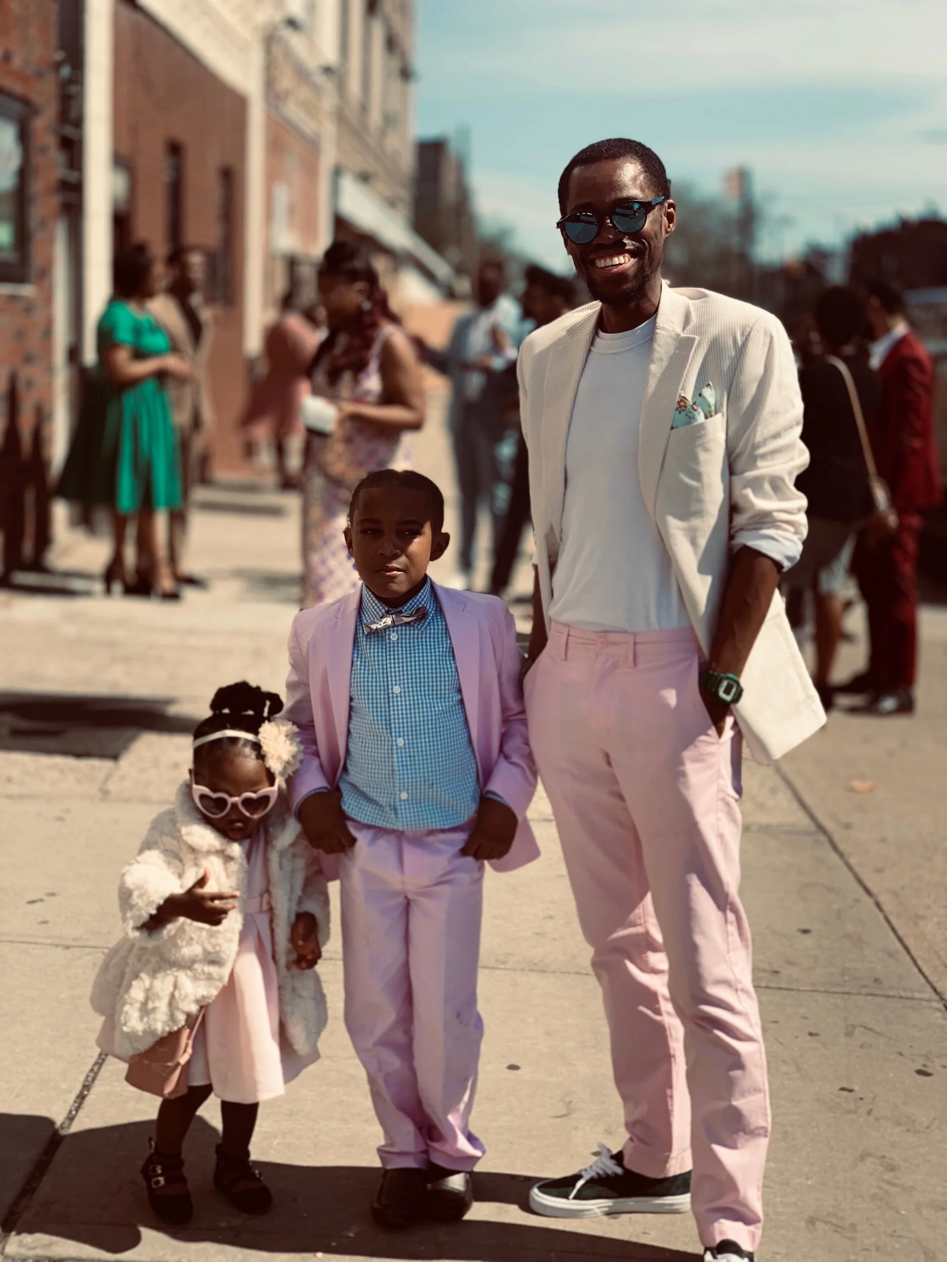 While one figures out the hand sign for peace… close enough. The other, had no pants pocket and like Ricky Bobby no idea of what to do with his hands. The big one, during the prep work, had two shirt buttons take a dive and topped with some iron-poop…(insert censored emoji face). Woosaw… So he scratched the shirt, and went with the Miami Vice look. No prob! Their swag still on point. Drip drip. The team knocked this Easter look out the park. But Mommy took the L and all the photo credits, to capture this Pastel Pink Perfect Easter Pic.